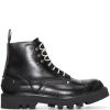 Black, leather, lace-up front closure, round toe and chunky rubber sole.